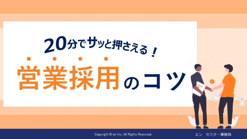 本セミナーでは、営業経験者へのアンケート結果から読み解いた営業職採用のコツを解説いたします。営業職を希望する求職者に響く求人のコツとは?営業募集のスカウトのコツは?など、具体的にご紹介いたします。